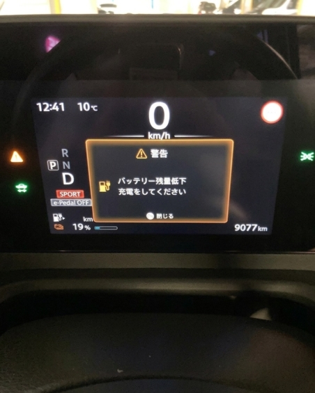 20kWhのバッテリー容量は市内移動には十分ですが、市外・県外への営業活動となると走行距離と残り%を常に意識する必要があります。特に雨天や低温時は電費が左右されるため、「バッテリー管理」が業務の重要なウェイトを占めることを痛感しました。実際にバッテリー残量が20%を切ると、車両から充電してくださいとアラートが出始め、心理的にもよくはありませんでした。